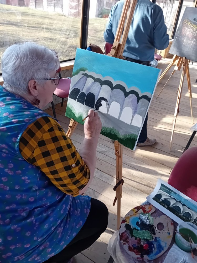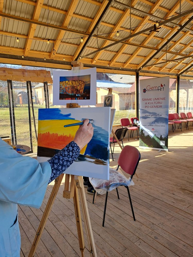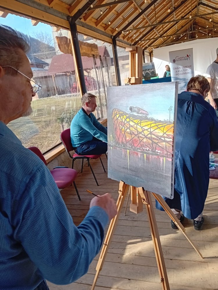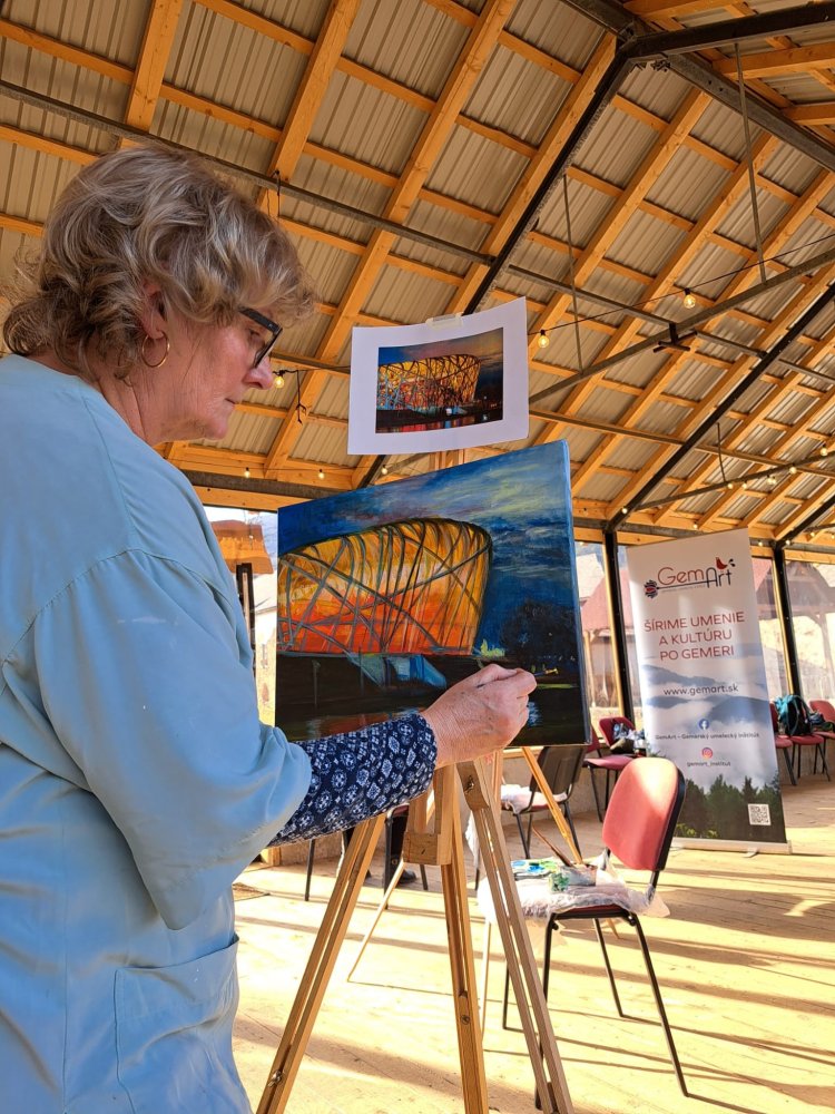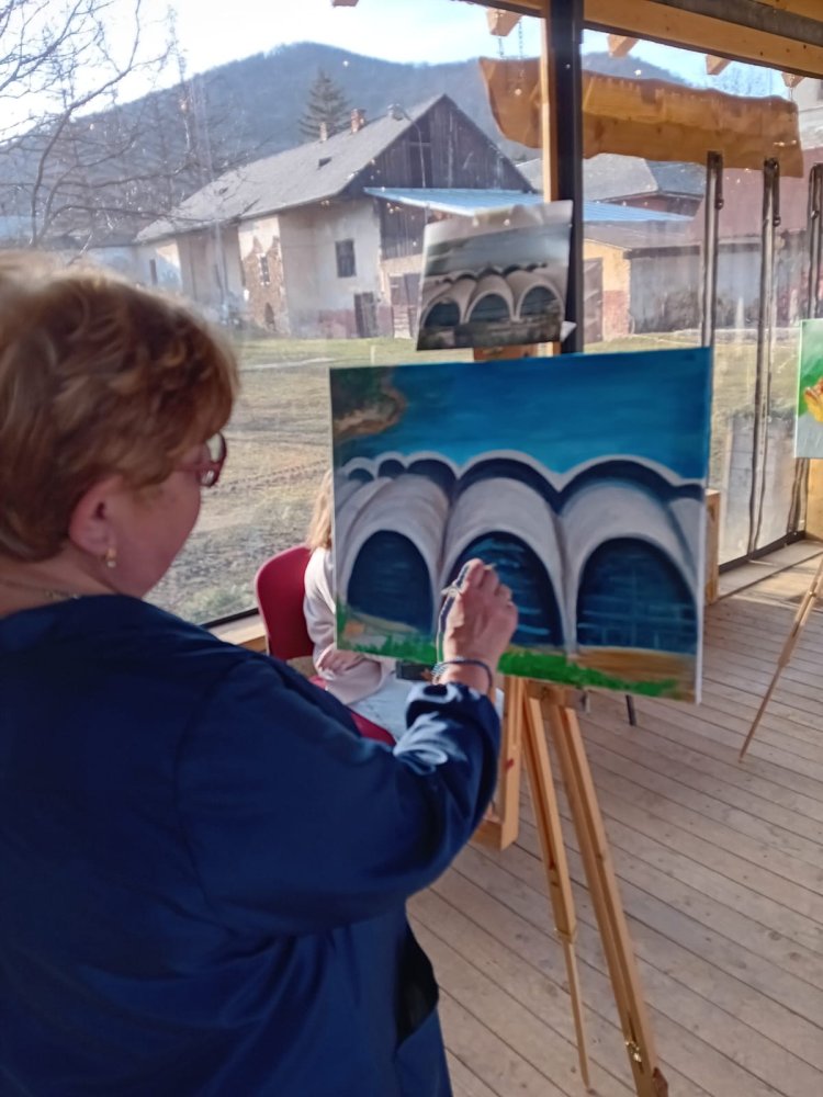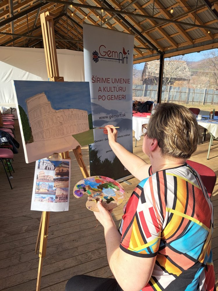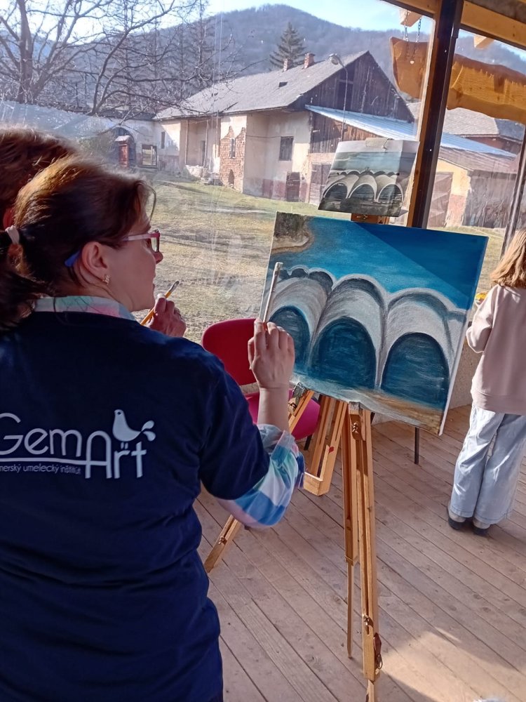Ako lepšie stráviť MDŽ než pri sebarealizácii, sebazdokonaľovaní, relaxácii, na krásnom mieste, v hrejivých lúčoch jarného slniečka a ešte k tomu v príjemnej spoločnosti? Toto všetko poskytlo gemerským umelcom dnešné Zážitkové maľovanie - Architektonická symbióza v športe a umení, Štítnik s obľúbenou lektorkou Martina Belanyiova.