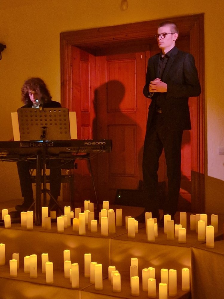 Dnes, na fascinujúcom mieste, v neodolateľnom svetle sviečok sa majestátne vynímal kus našej gemerskej histórie. Kaštieľ v Králi nás privítal s otvorenou náručou a ponúkal atmosféru, ktorá sa nedá popísať. Nebola spôsobená iba sviečkami a históriou, ale vrúcnym pomyselným objatím každého človeka z publika, zmiešaným s nenapodobniteľnou energiou sálajúcou z našich mladých hudobníkov Adama Pástora a Martina Belányiho. Bol to ich posledný koncert v plameni sviečok až do prázdnin a dali do toho všetko, čo ovládajú. Vedomí si svojich kvalít, sebavedomí, ale absolútne nenároční a skromní odchádzali plní dojatia z toho, že aj v tak malej obci ako je Kráľ dokážu naplniť sálu a z celkového počtu, viac ako 25 miestnych občanov si príde vypočuť operný spev a klavírne skladby.