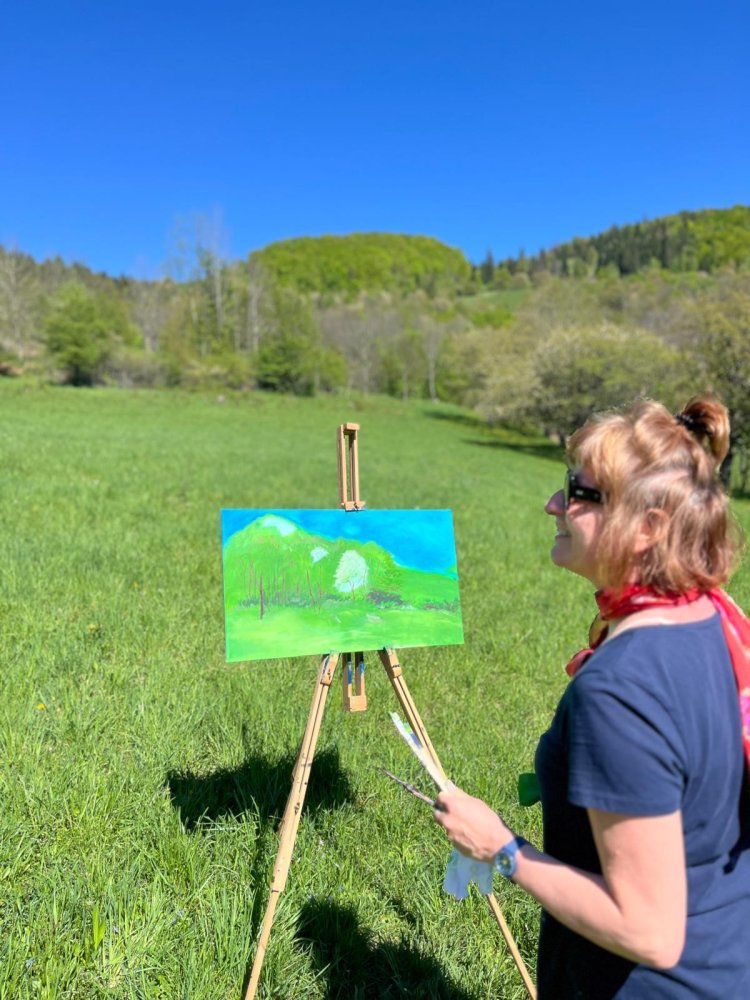 Medzi už veľmi málo rozkvitnutými čerešňami v malebnej Brdárke sa poslednú aprílovú nedeľu (presun zo soboty kvôli počasiu) uskutočnilo nezabudnuteľné zážitkové maľovanie pod holým nebom.