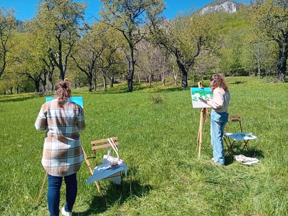 Aj napriek náročnejšiemu terénu čerešňového hája sa nikto nenechal odradiť. Práve naopak, všetci účastníci prijali výzvu a nechali sa naplno uniesť jedinečnou atmosférou miesta. Každý kto chytil do ruky štetec bez zaváhania vyobrazil najromantickejšie miesto na Gemeri tak bravúrne, že aj umeleckí velikáni by mohli závidieť!