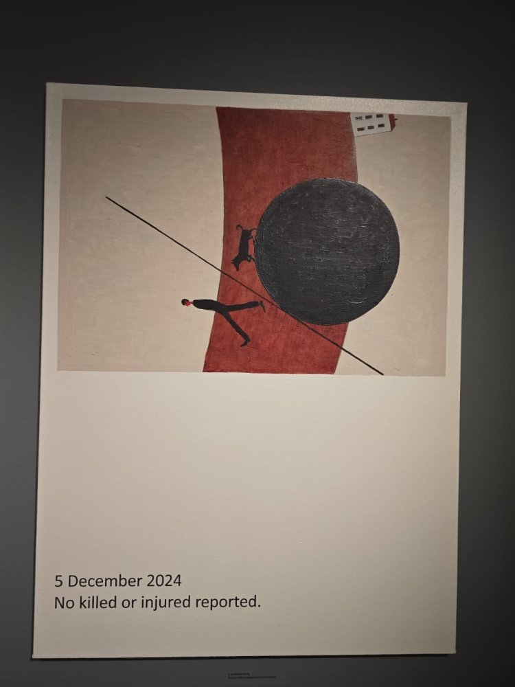 Na poslednom poschodí v krídle B je zaujímavá výstava, ktorá cez výtvarníctvo zachytáva mesiac vojny na Ukrajine a jeho konkrétne obete, v konkrétny deň v mesiaci november 2024. Veľmi zaujímavý spôsob pohľadu na strašné veci, ktorých je ľudstvo schopné, je len ďalším dôkazom toho, že umenie je tu preto, aby reflektovalo, čo sa v spoločnosti deje a preto potrebuje absolútnu slobodu.