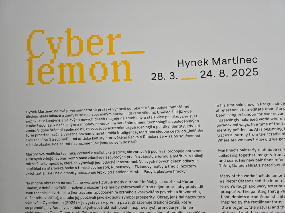 Hynek Martinec, dlhodobo žijúci v Londýne, a jeho „Cyberlemon“ je dôkazom, že hyperrealistická, až fotorealistická tvorba, aj keď so skreslenou mierkou, má čo do seba! Martinec pomocou citrónu v rôznych polohách, poukazuje na zrýchlený, kvôli vzostupu extrémistických ideológií a stále sa polarizovaný svet. Výstava núti k zamysleniu sa nad súčasným stavom vedomia ľudstva.