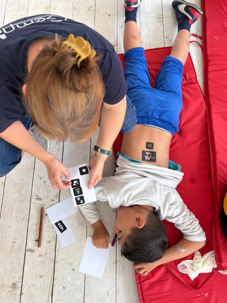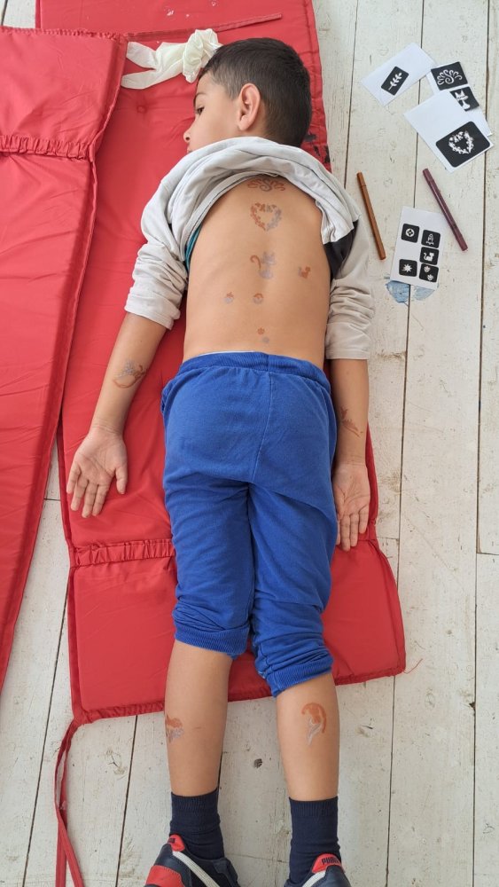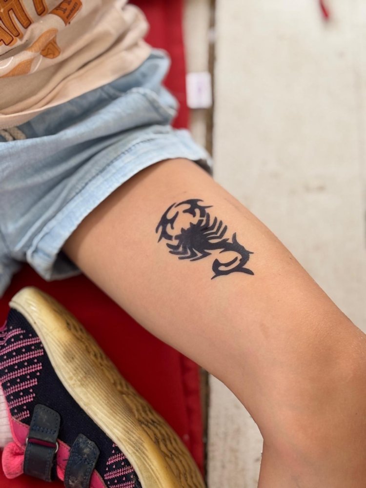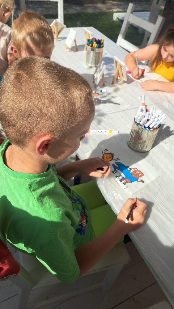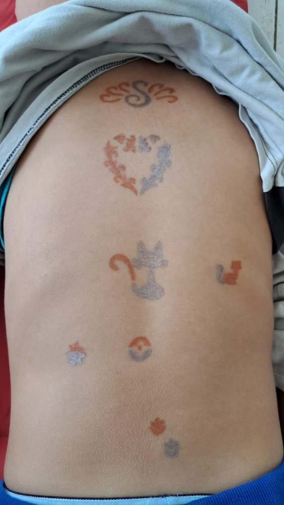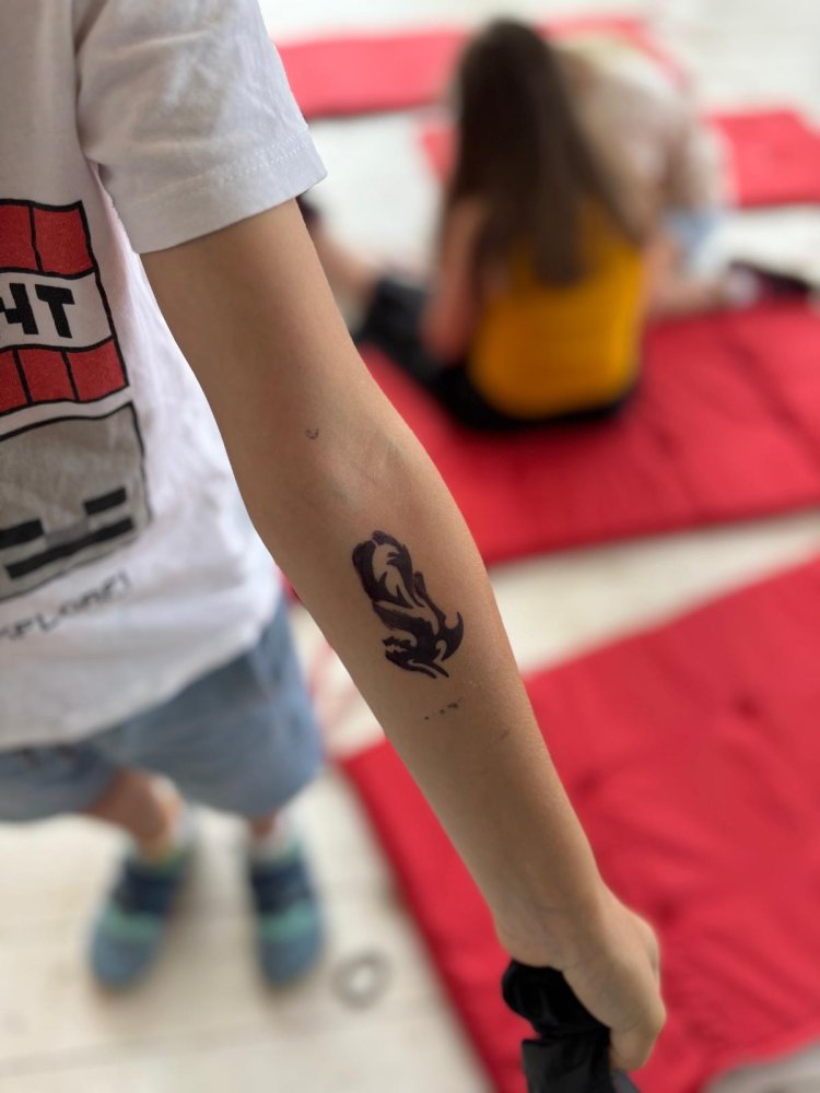 Na dnešnom kreatívnom kurze venovanom téme tetovania sme ale pochopili aj niečo hlbšie než len kresby na koži. Niektoré deti (asi štyria) sa totiž rozhodli nepodstúpiť samotné tetovanie, hoci boli obklopené skupinou, ktorá sa do toho nadšene pustila. Ich vedomé rozhodnutie ostať verné samy sebe je ukážkou odvahy. Minimálne rovnako veľkej ako sa nechať tetovať