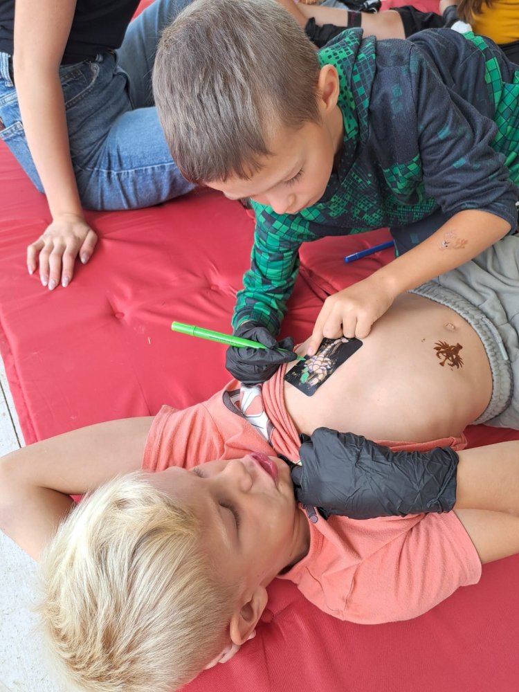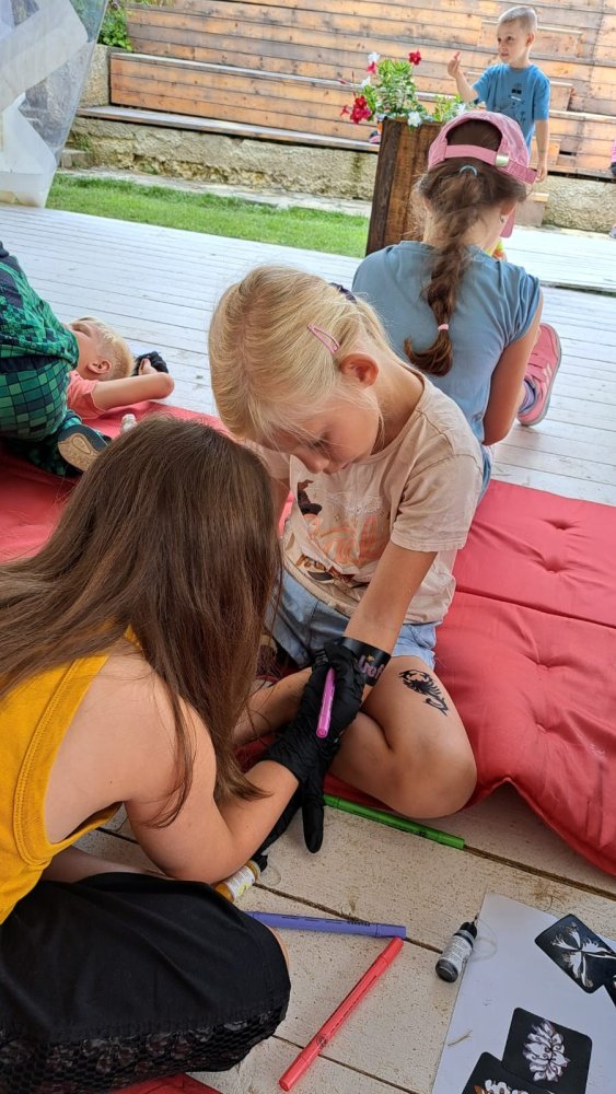 . Minulý týždeň bolo tetovanie najobľúbenejšou aktivitou medzi deťmi aj mládežníkmi. Uvidíme, ako ho v piatok na vernisáži vyhodnotia umelci z druhého turnusu
