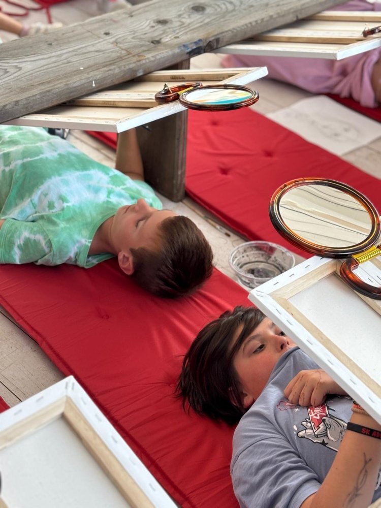 Dve tváre môjho ja. Tak znelo zadanie pre diptych. Úprimné a originálne portréty vznikajúce po ležiačky cez odraz v zrkadle, v tejto polohe nad štetcami našich umelcov, ohúrili nie jedného z nás. Veselé, hravé, vážne, pravdivé, hlboké... Zobrazujúce emócie, nálady i farebné výrazy vnútorného sveta účastníkov nášho, už 4. ročníku letného kurzu pre deti a mládež.