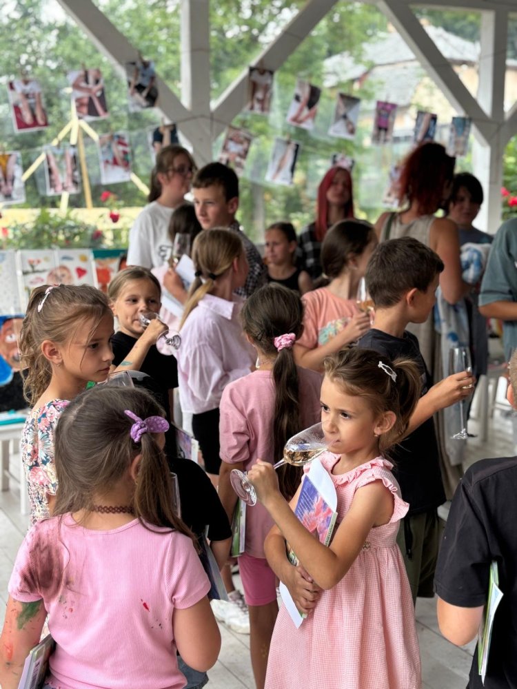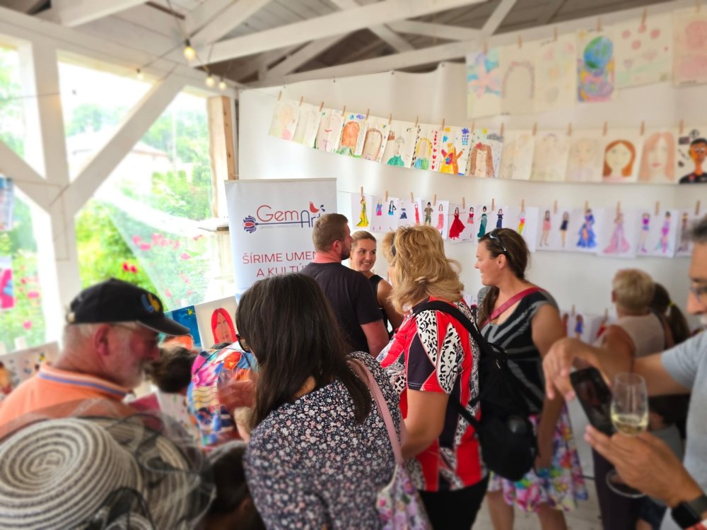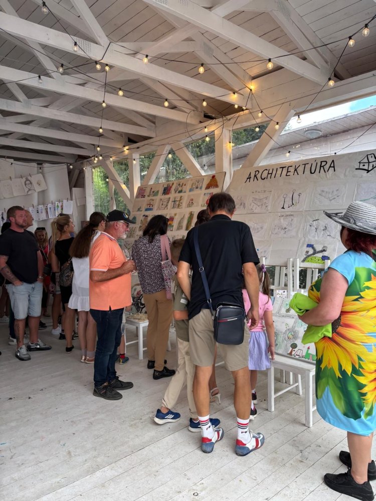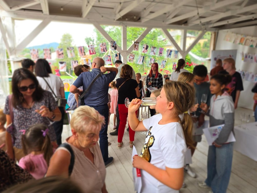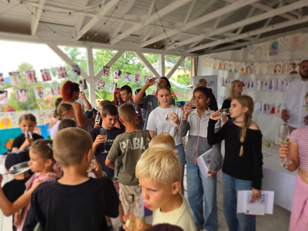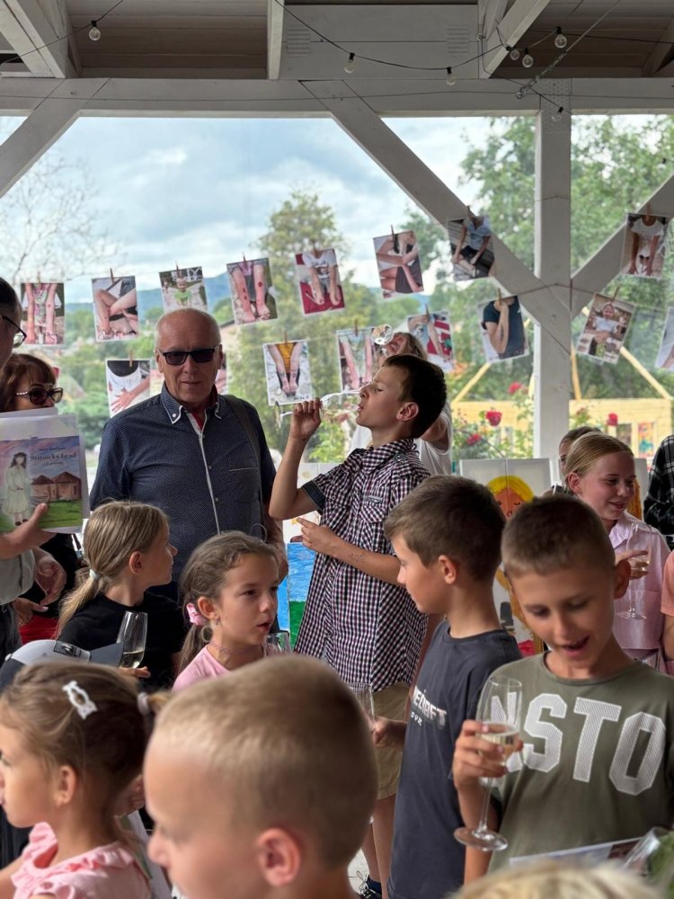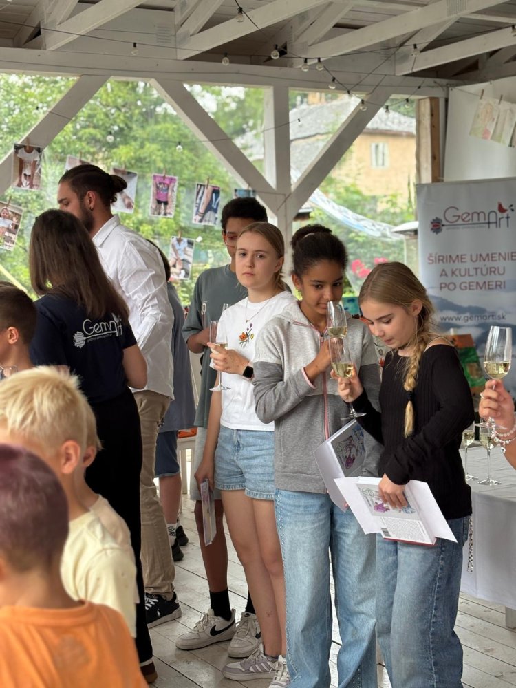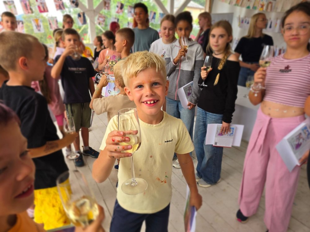 Vernisáž, rituálny akt prechodu umeleckého diela z autonómneho priestoru ateliéru do spoločenského priestoru interpretácie. Aj toto učíme našich mladých umelcov na Letný kurz kresby, maľby a designu pre deti a mládež, 2. turnus, Betliar.