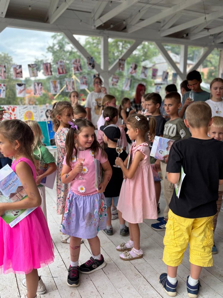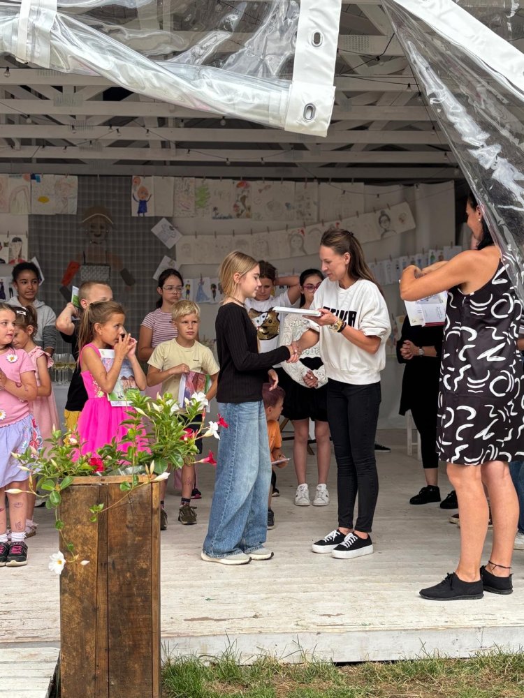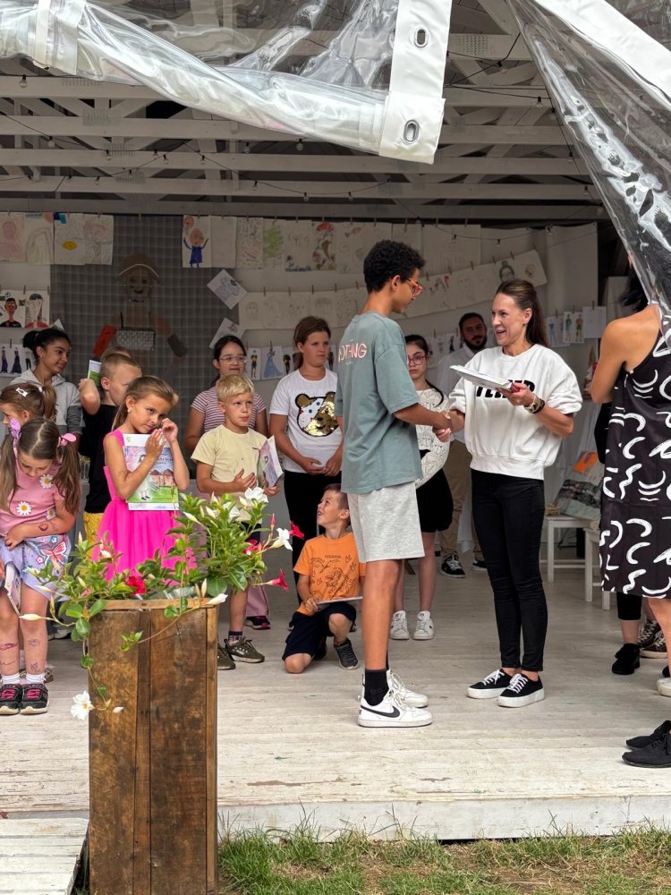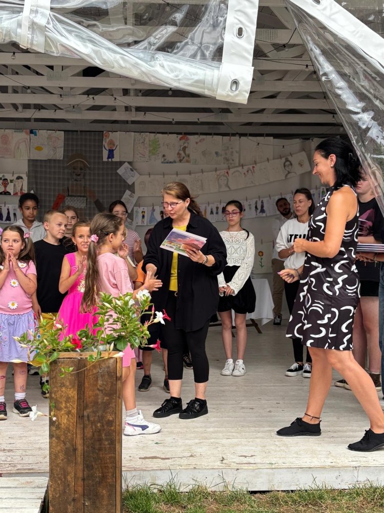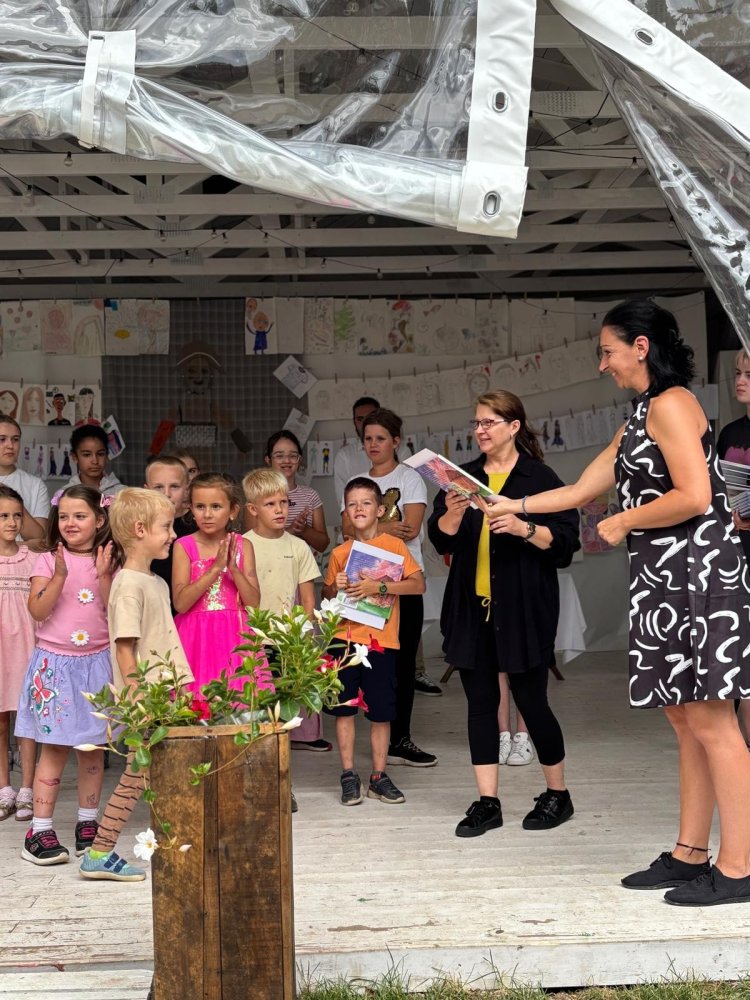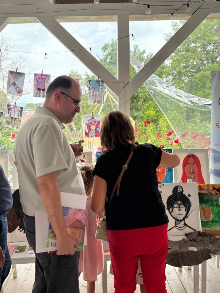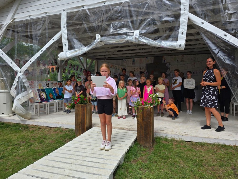 Vernisáž, rituálny akt prechodu umeleckého diela z autonómneho priestoru ateliéru do spoločenského priestoru interpretácie. Aj toto učíme našich mladých umelcov na Letný kurz kresby, maľby a designu pre deti a mládež, 2. turnus, Betliar.