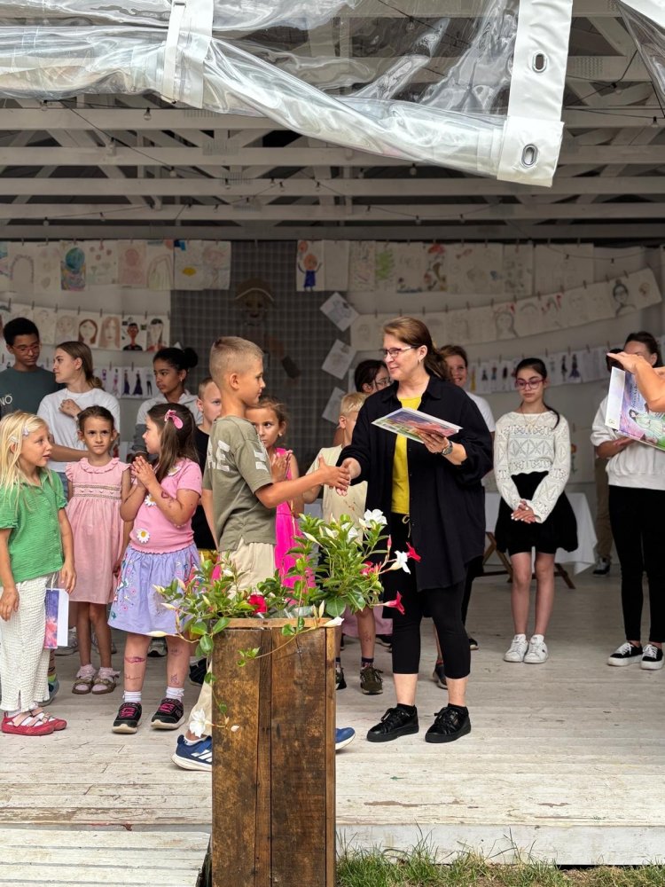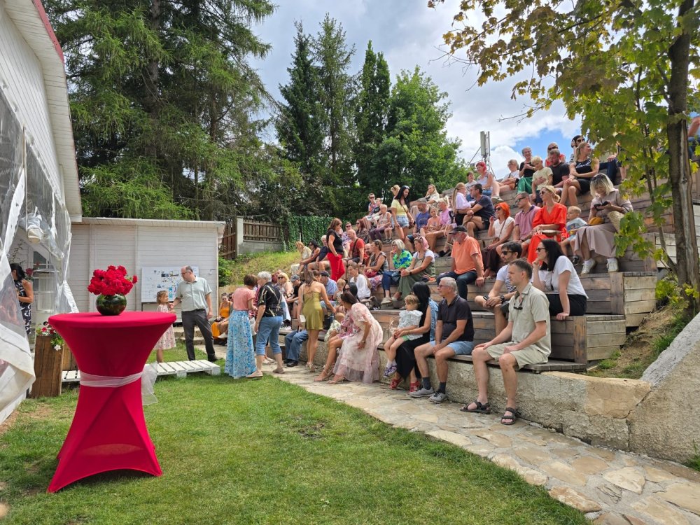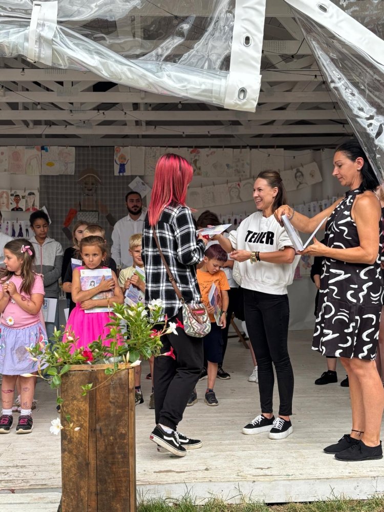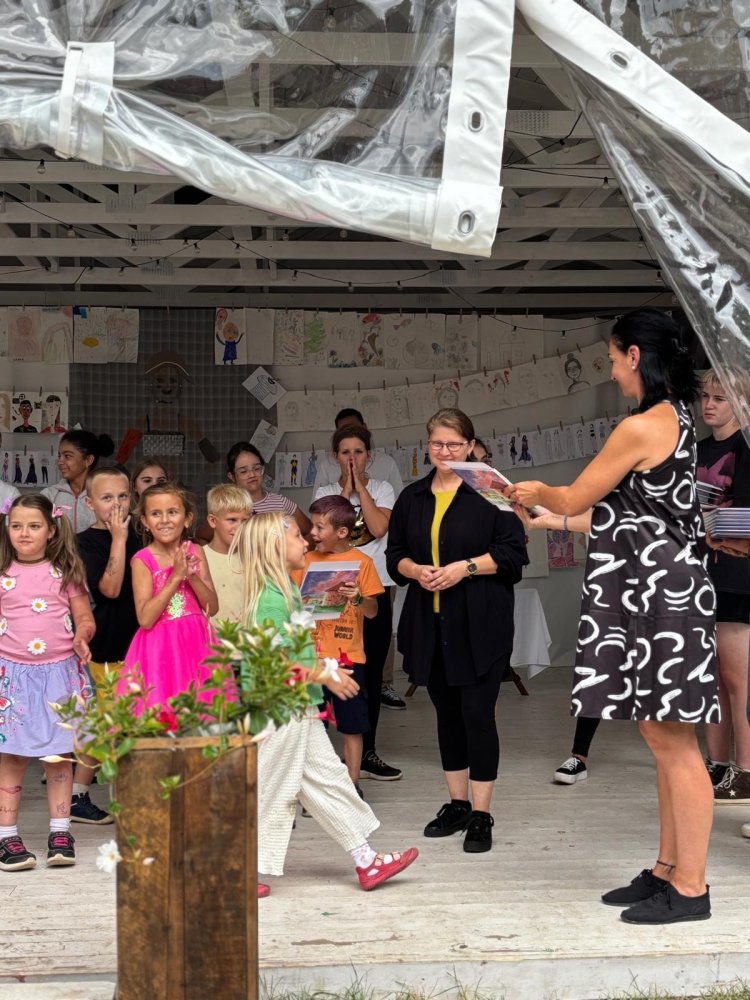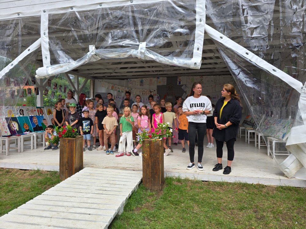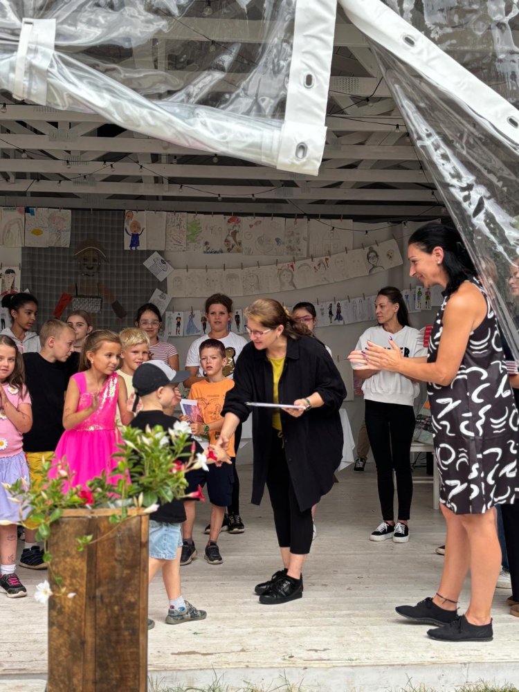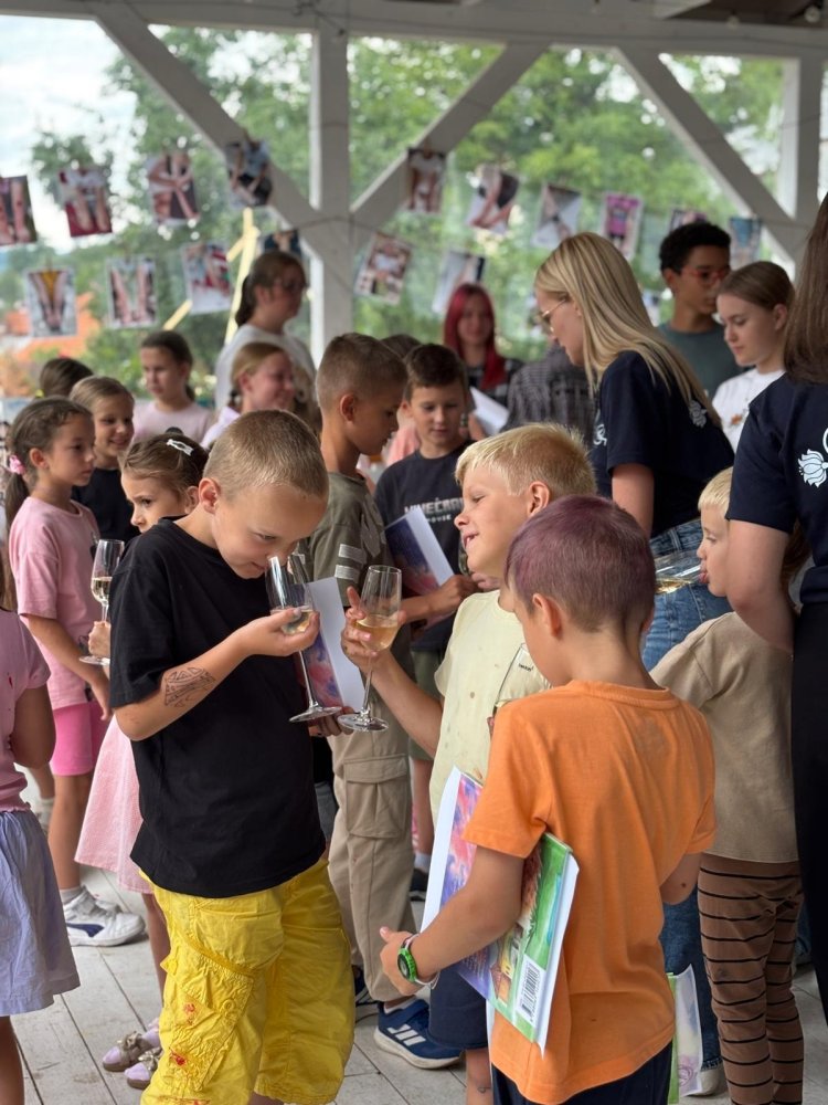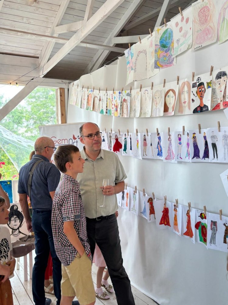 Vernisáž, rituálny akt prechodu umeleckého diela z autonómneho priestoru ateliéru do spoločenského priestoru interpretácie. Aj toto učíme našich mladých umelcov na Letný kurz kresby, maľby a designu pre deti a mládež, 2. turnus, Betliar.