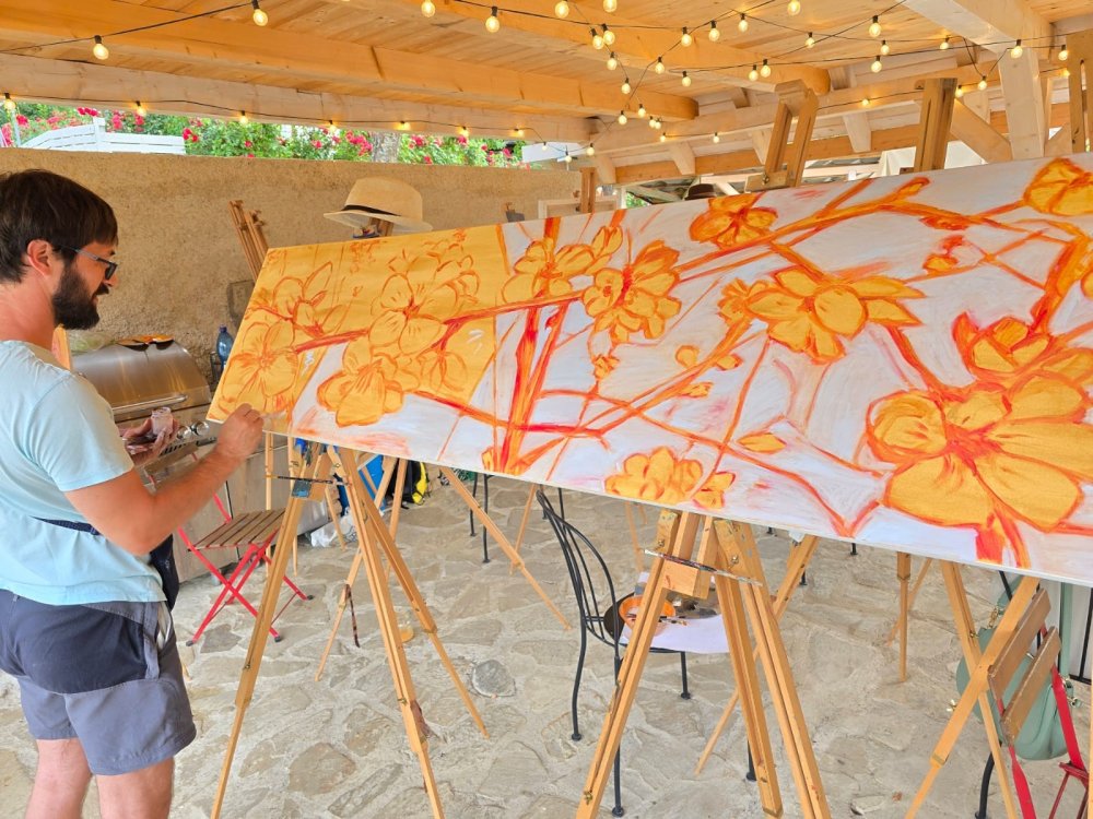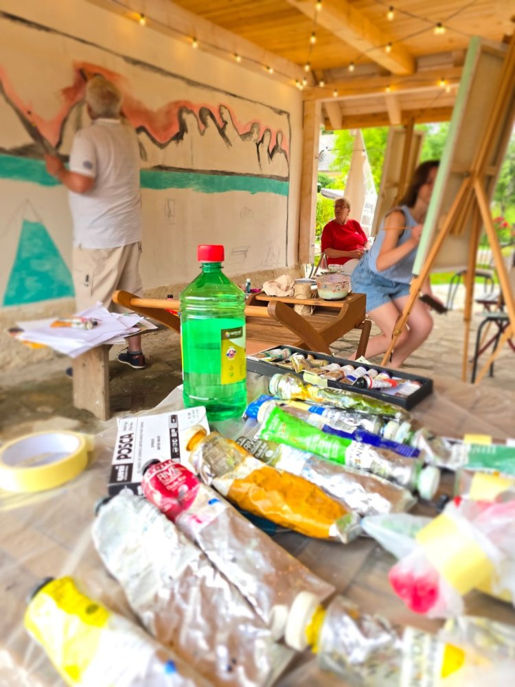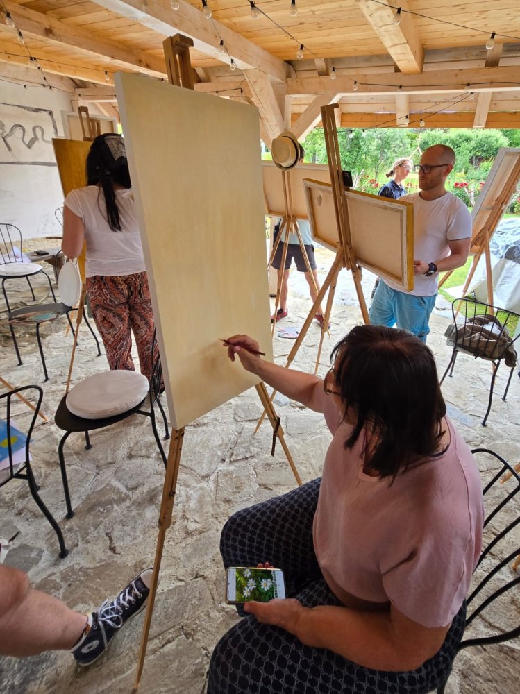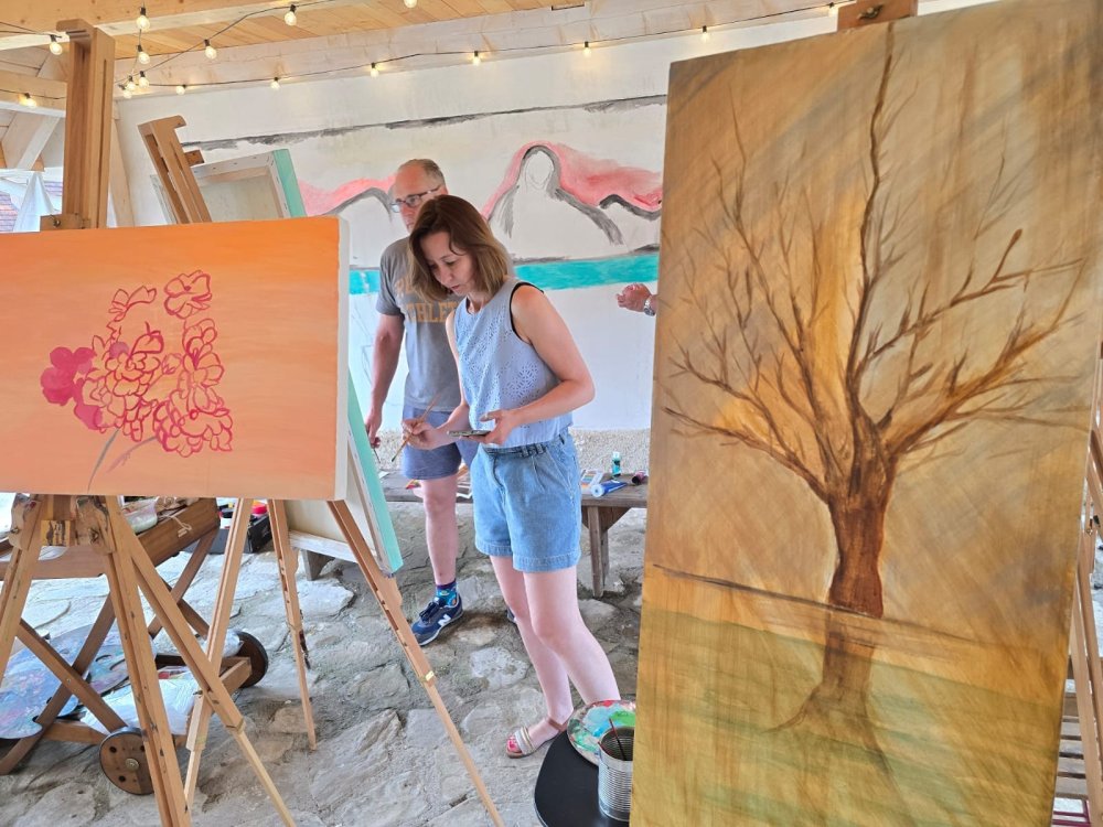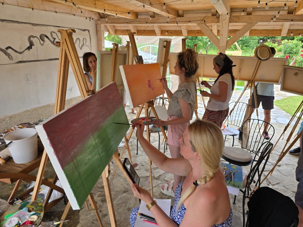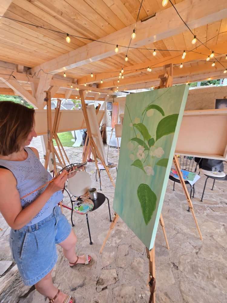 Popoludní sa pozornosť sústredila na technický a filozofický dialóg medzi dvoma výrazovými médiami – olejom a akrylom. Pod vedením renomovaného pedagóga Libora Kalába z UMPRUM Praha maľovali dospelí umelci z celého Slovenska aj Čiech. Čestný hosť kurzu, prof. Svatopluk Adámek, svojím monumentálnym dielom – reinterpretáciou Poslednej večere na stene altánu, v priestore tematizoval sakrálne umenie ako architektúru medzičasia.