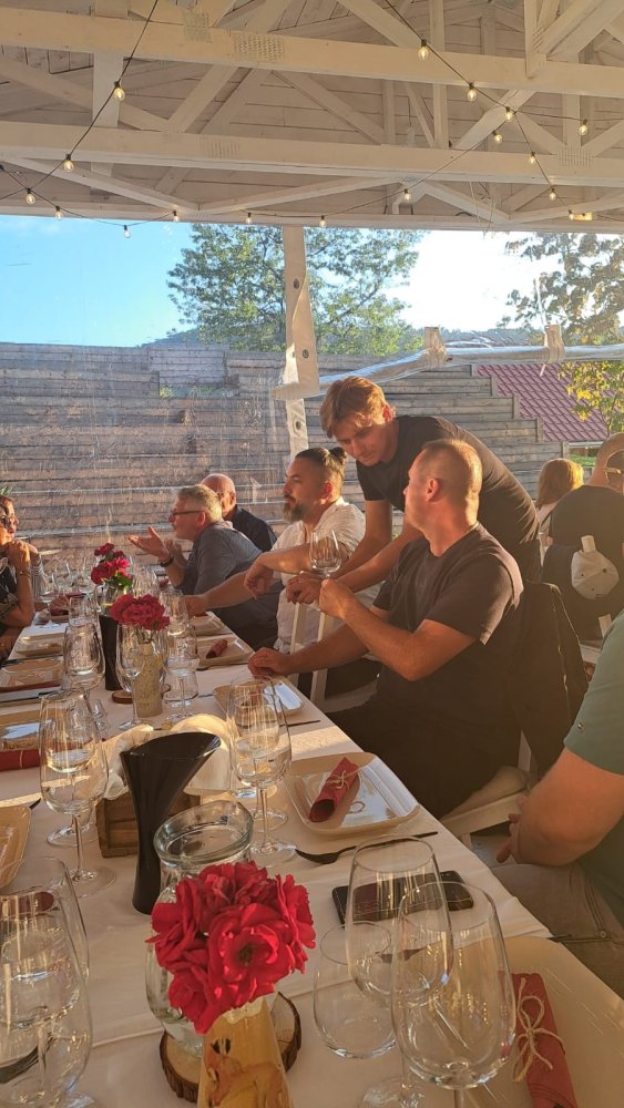 Toto intenzívne obdobie symbolicky uzatvorila včerajšia vernisáž, ako manifestácia estetickej plurality naprieč generáciami, médiami aj mentálnymi rámcami vnímania, doplnená o vínnu degustáciu vín z Apelácie Kurdějov pod vedením Tadeáša z Vinařství Václav, Hustopeče. Ochutnávalo sa 10 vzoriek, a jedenásta sa podávala pri otvorenom grile. Celý večer sa tak stelesnil filozofiou umeleckého prelínania. Obrazy aj víno, robia svet omnoho krajším a zaujímavejším miestom pre život. A vernisáž aj degustácia opäť ukázali, že umenie, ak má kde dozrieť, vytvára priestor ľudskej blízkosti, rozhovoru a zmysluplnosti. Napokon, pri pohári vína sa umenie nielen vníma, ale aj spracúva