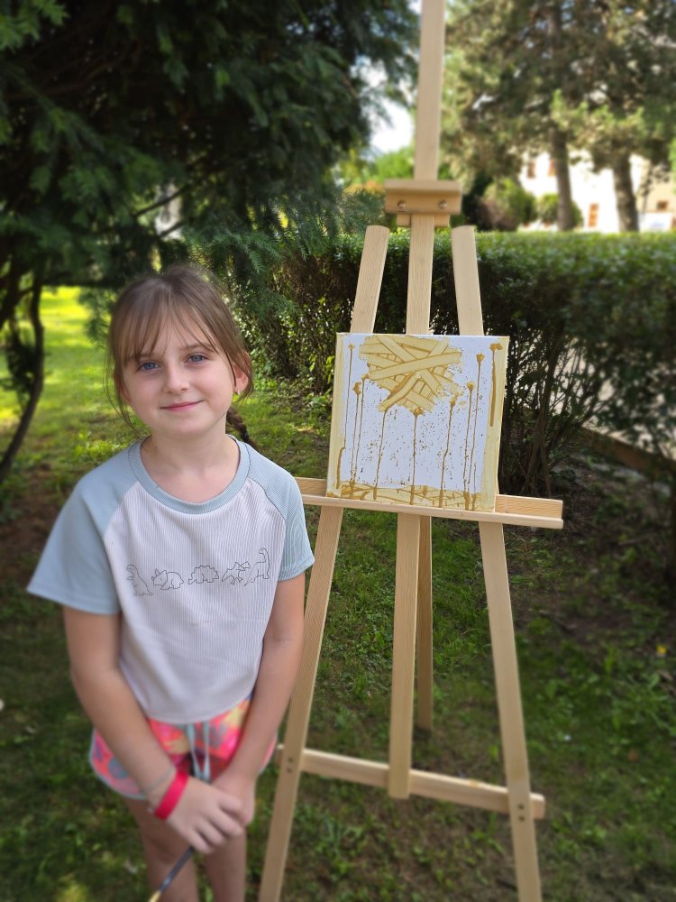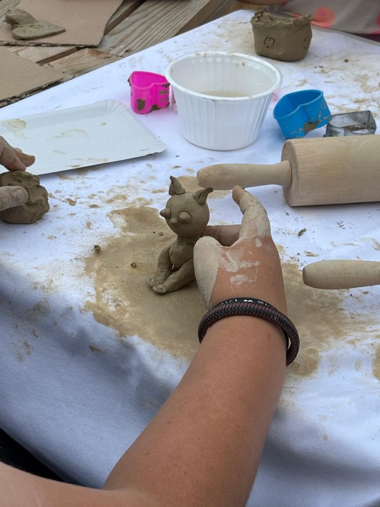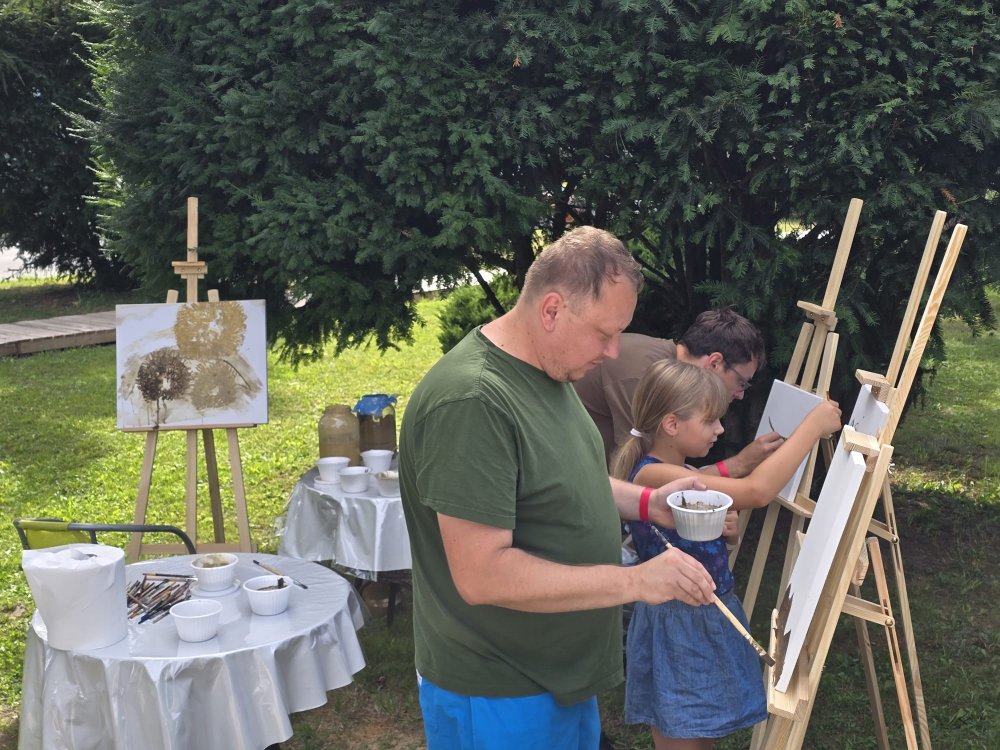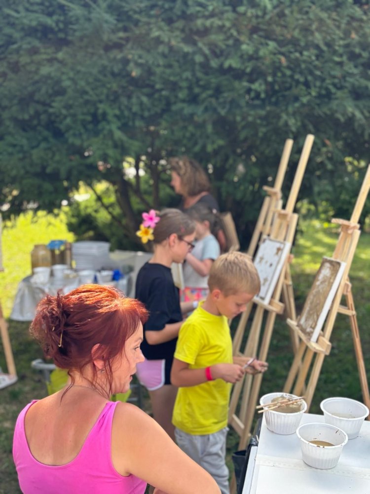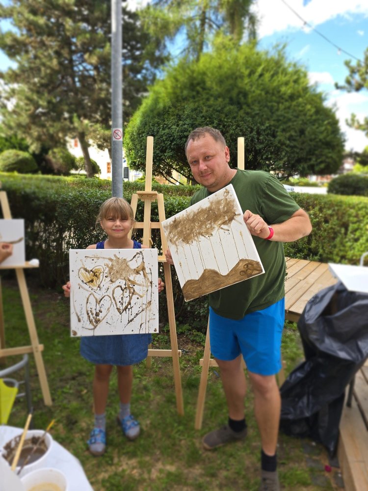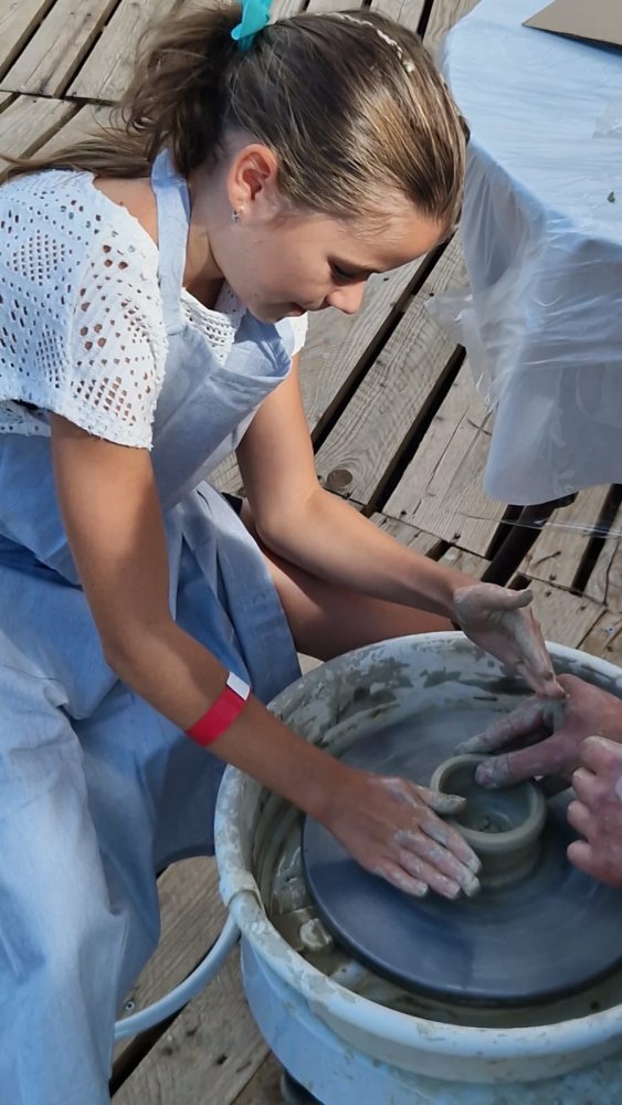 Dnes sa pracovalo s hlinou všetkými možnými spôsobmi: modelovalo sa, maľovalo hlinou na plátna a papiere, krútilo sa na hrnčiarskom kruhu. A to doslova non-stop celé tri hodiny. Od prvého okamžiku sa zaplnili všetky kreatívne stanovištia, stojanov bolo málo, z modelovania sa museli mladí umelci „vyháňať“, aby uvoľnili miesto ďalším a na hrnčiarske kruhy sa stála fronta po celý čas. Ani sa nám nesnívalo, keď sme ART PARK tvorili, že takto by to mohlo dopadnúť len po mesiaci jeho fungovania!