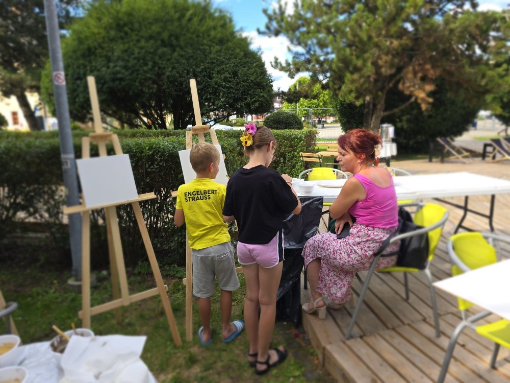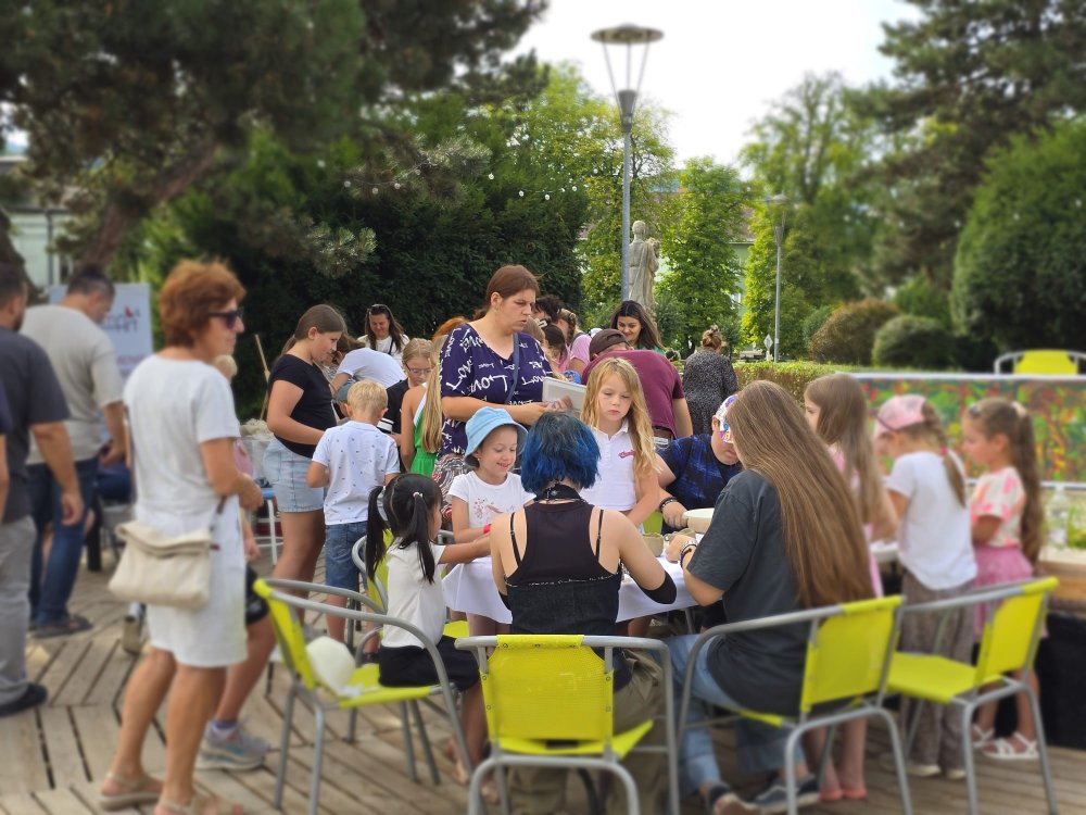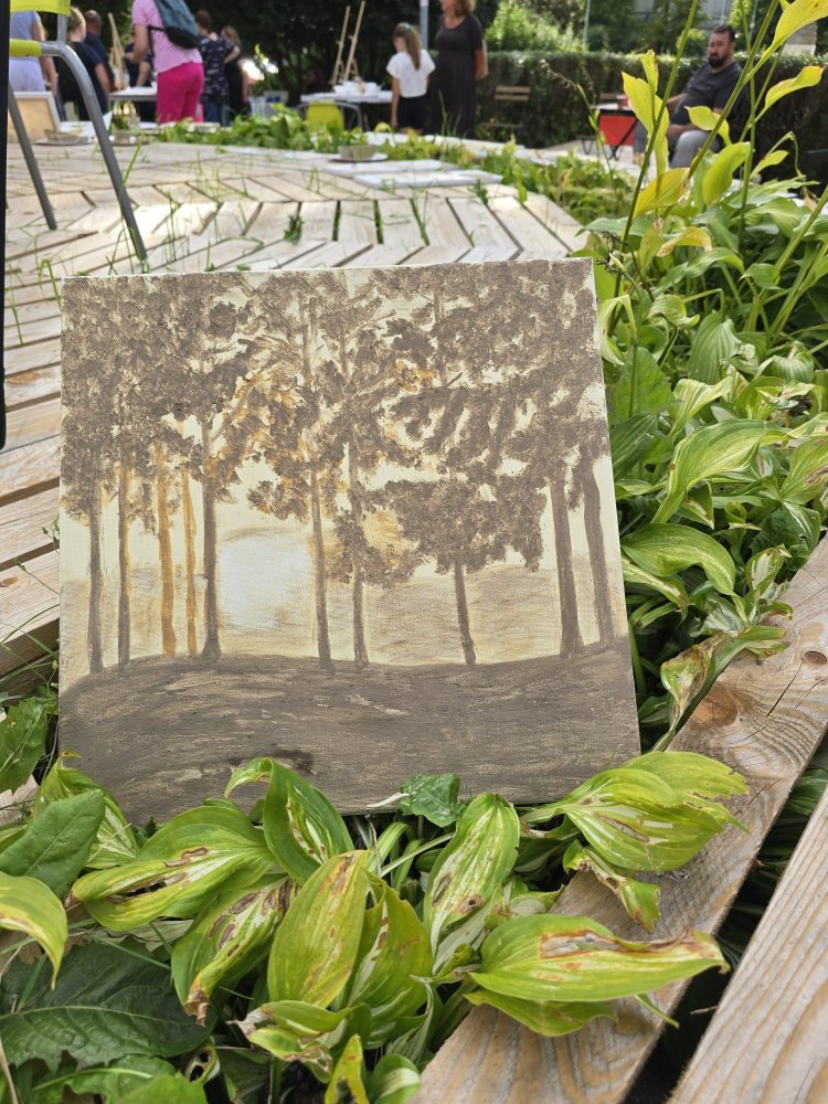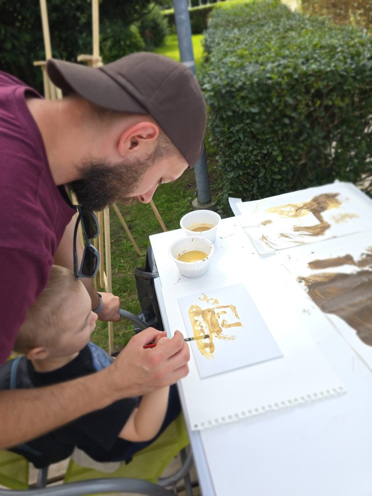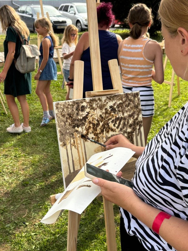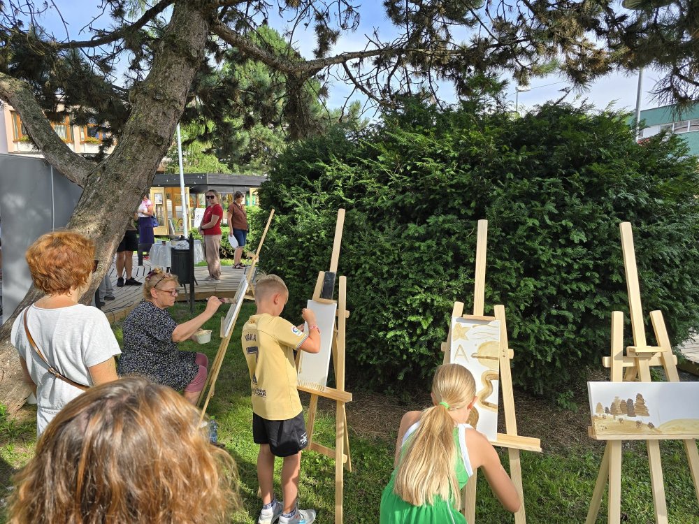 Dnes sa pracovalo s hlinou všetkými možnými spôsobmi: modelovalo sa, maľovalo hlinou na plátna a papiere, krútilo sa na hrnčiarskom kruhu. A to doslova non-stop celé tri hodiny. Od prvého okamžiku sa zaplnili všetky kreatívne stanovištia, stojanov bolo málo, z modelovania sa museli mladí umelci „vyháňať“, aby uvoľnili miesto ďalším a na hrnčiarske kruhy sa stála fronta po celý čas. Ani sa nám nesnívalo, keď sme ART PARK tvorili, že takto by to mohlo dopadnúť len po mesiaci jeho fungovania!
